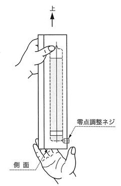 水平調整螺絲向上, 用手輕拍測定面, 調整方法如圖: | ![]() |