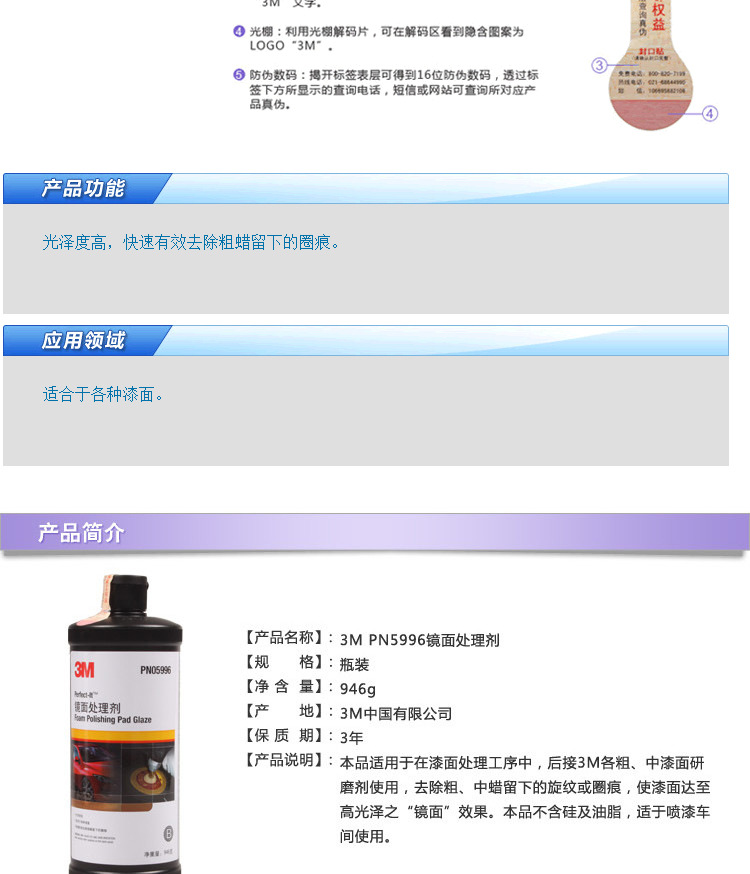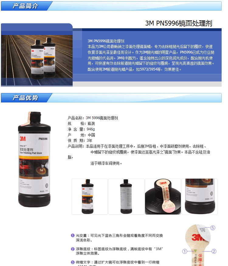 訂購:3M PN5996鏡面處理劑 劃痕修復(fù)汽車蠟