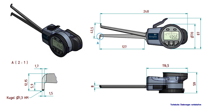 多個(gè)數(shù)顯設(shè)定功能: 絕對和相對測量, 上下限超差顯示等。