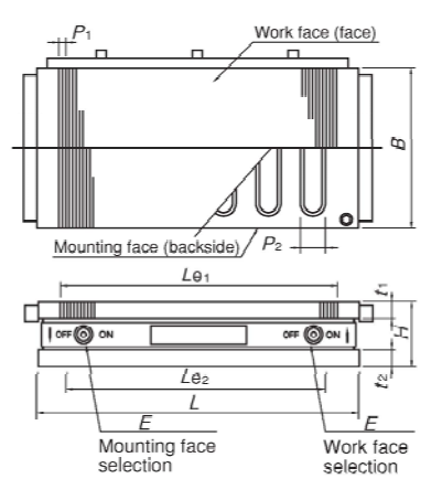 吸盤分兩面,永磁吸引面和夾頭安裝面。開關(guān)可以打開和關(guān)閉,因此無(wú)需機(jī)械夾緊安裝。可用于流體。