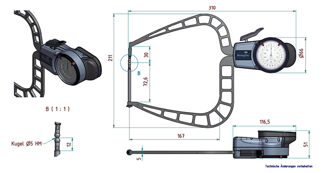 • 德國kroeplin帶表外卡規(guī)D450F,測量范圍:0-50mm, 精度:0.05mm,喉深長度:169mm。