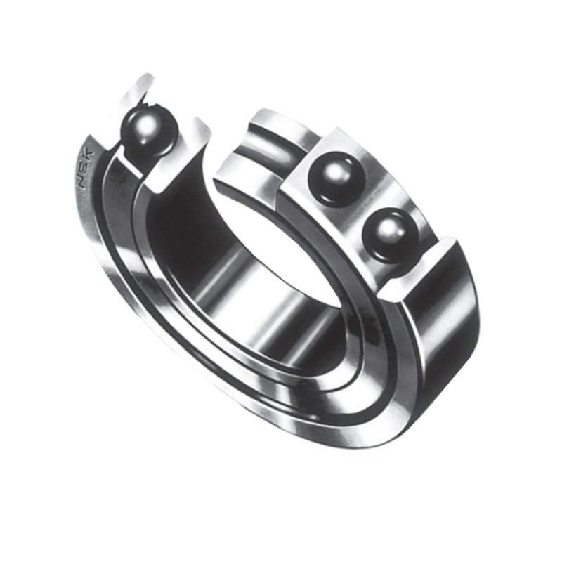 單列角接觸球軸承-這種結(jié)構(gòu)形式的軸承,可以承受徑向載荷和單向的軸向載荷。球與內(nèi)圈、外圈有15度、25度、30度或40度的接觸角。其接觸角越大,軸向載荷的承受能力越大。接觸角越小,則約有利于高速旋轉(zhuǎn)。通常,將二套軸承對置,調(diào)整內(nèi)部游隙后使用。一般,采用鋼板沖壓保持架,但接觸角小于30度的高精度軸承,主要使用聚酰胺形成保持架。