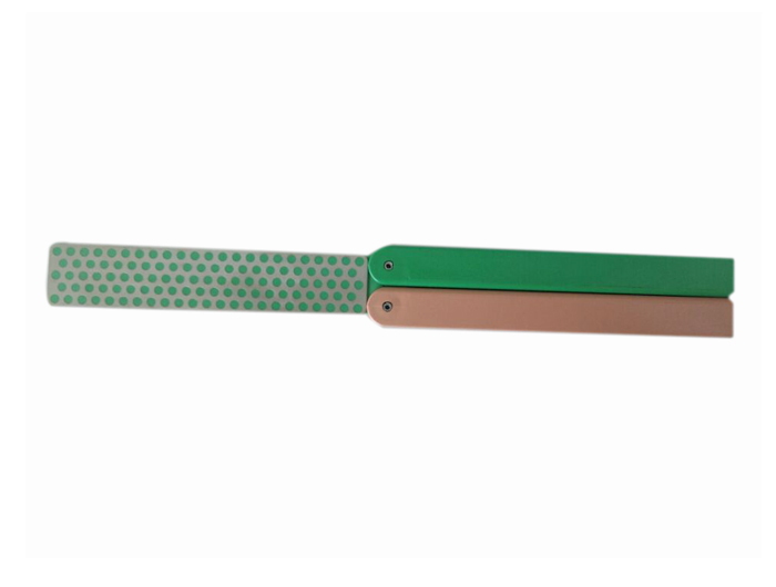 兩個(gè)金剛石砂輪刀結(jié)合起來(lái),創(chuàng)造一個(gè)輕量級(jí)的磨刀石,適用于家庭,野營(yíng),工具盒,園藝棚等等。提供粗/超粗,細(xì)/粗,和超精細(xì)金剛石的組合。