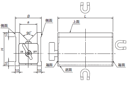 磁性塊的V槽面、底面和背面都帶有磁性,可以固定工件。