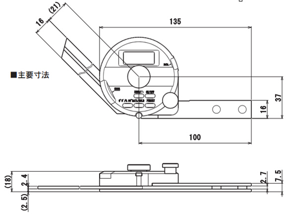 數(shù)顯角度計(jì)產(chǎn)品尺寸圖示: